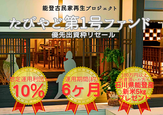 【抽選】【TRIP INN能登空港】たびやど第1号ファンド/出資枠リセール 能登古民家再生PJ