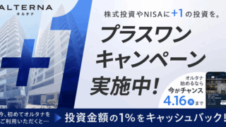 こんにちは!管理人まさおです。まさお不動産STの「ALTERNA(オルタナ)」で投資金額の1%がキャッシュバックされるキャンペーンが開始しました!今回のキャンペーンの実施期間は「2026年3月27日(金)~年4月16日(木)13時」。この期...