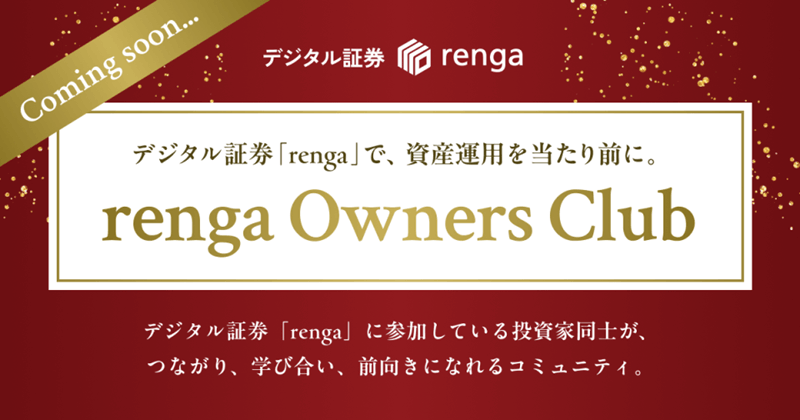 ちなみにこのクラブは「デジタル証券「renga」に投資している投資家同士が、つながり、学び合うコミュニティ」とのこと。
