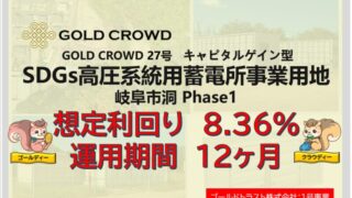 こんにちは!管理人まさおです。まさお不動産型CFの「GOLD CROWD(ゴールドクラウド)」で11月13日(木)12時から新ファンドが募集開始の予定です!今回募集される「SDGs高圧系統用蓄電所事業用地 岐阜市洞 Phase1」の主な募集...
