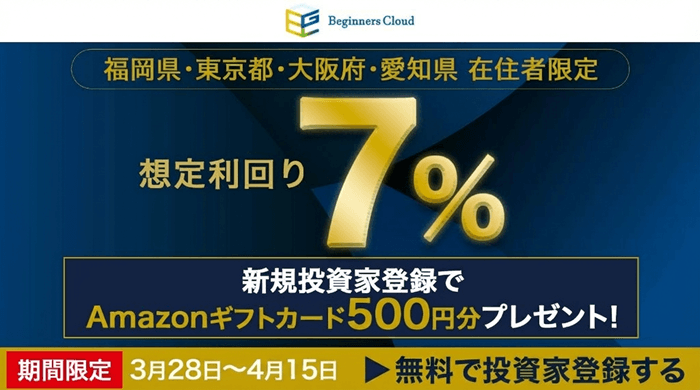不動産型CFの「ビギナーズクラウド」で4月1日(水)9時から新ファンドが募集開始の予定です!
