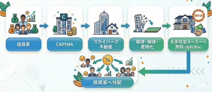 ファンド説明によると貸付先の「スカイパーク不動産」は本ファンドの資金で東京都足立区に所在する土地及び建物を取得予定のようです。