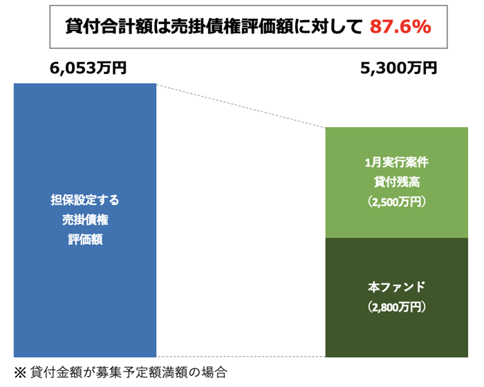 以前と今回のファンドの募集金額(満額想定)を合算した貸付合計金額は売掛債権評価額に対して87.6%となる見込みとのことです。