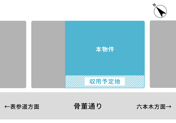 上の「今回の物件周りの概要図」でも収用予定の土地について図示されています。