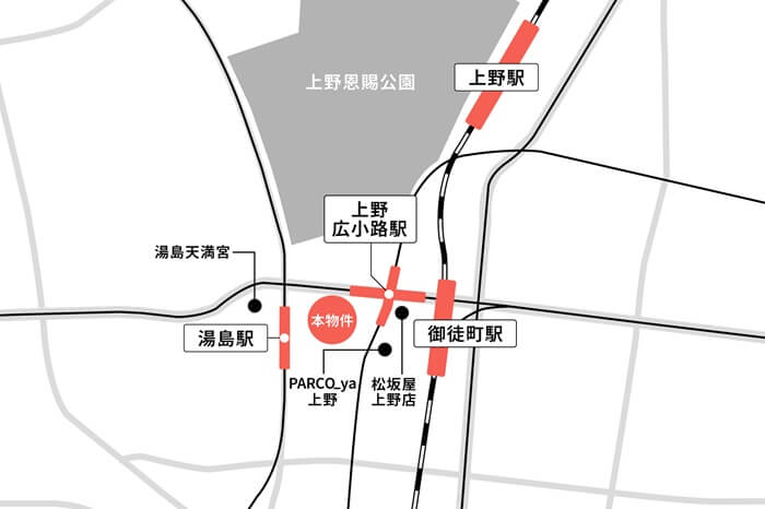 今回の物件は御徒町駅近辺から湯島天満宮の間の参道「学問のみち」に隣接した場所にあるとのこと。