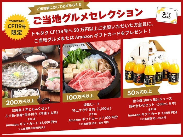 最後に、今回のファンドへの50万円以上の投資で貰えるご当地グルメセレクションについてご紹介しておきたいと思います。
