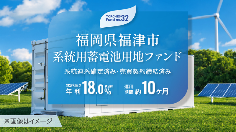 今回募集される「No.32 福岡県福津市 系統用蓄電池用地ファンド」の主な募集条件はこちら。