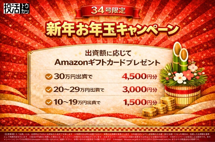 ただし本ファンドには投資金額に応じてAmazonギフト券が貰える新年お年玉キャンペーンの設定もあります。