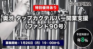 【抽選】奥渋 タップカクテルバー開業支援(ファンド90号)