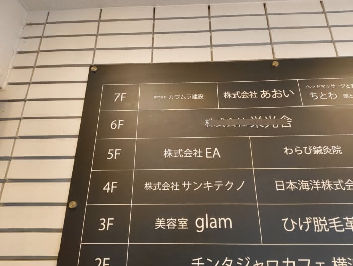 また同ビルの入居看板を確認したところ7階には3店舗が入居しており、そのうち恐らく写真の手前側の辺りに所在しているようでした。