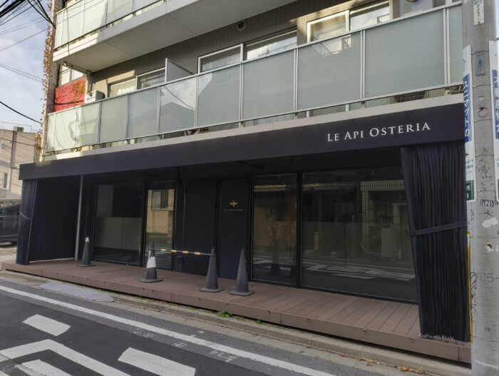 実は本物件のすぐ目の前には「LE API OSTERIA」という食べログで星3.69点、ディナーの価格帯15,000~19,999円のお店がありました。