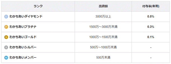 わかちあいファンドでは月末の運用中額に応じた会員ランク制度があります。